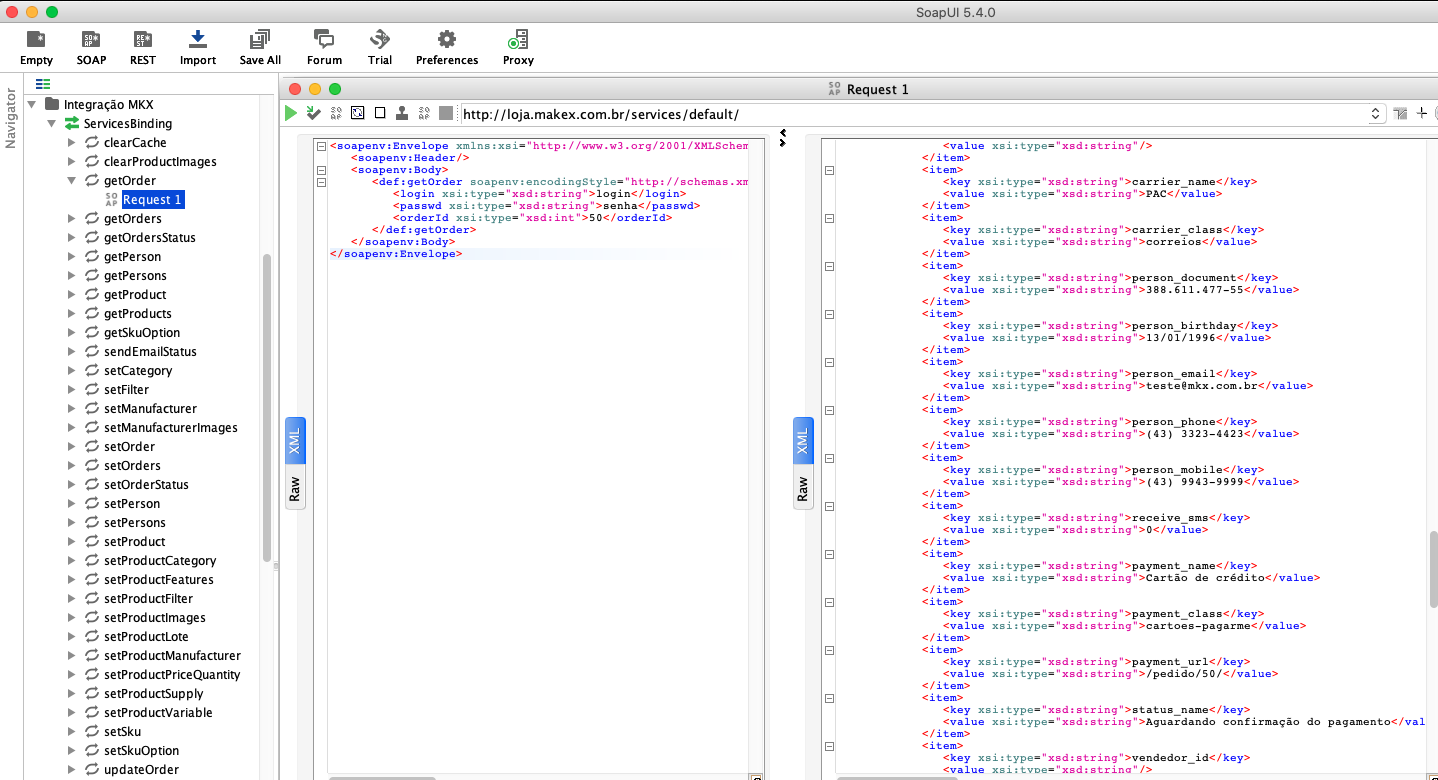 Para testar o webservices, Sugerimos a utilização da ferramenta: SoapUI Open Source, que pode ser baixada em: https://www.soapui.org/downloads/soapui/