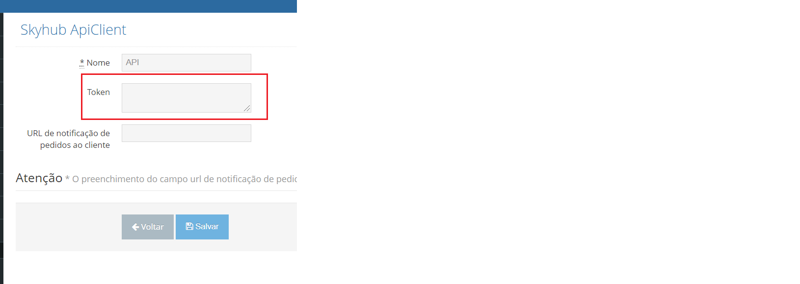 Este é o token necessário para realizar a integração, portanto informe mediante a um chamado, com o login e a senha do seu painel da Skyhub para nós da MKX realizarmos a integração.